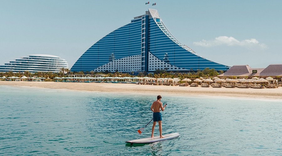 Jumeirah Beach is known for its palm-fringed coastline and luxury resorts. It’s perfect for sunbathing, watersports, and peaceful beachside relaxation. Hotels here offer private beaches, spa experiences, and world-class service. Ideal for travellers seeking a calm, resort-style escape.