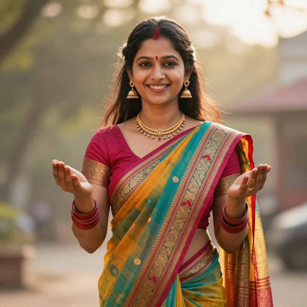 Smiling Indian woman in vibrant traditional sari
