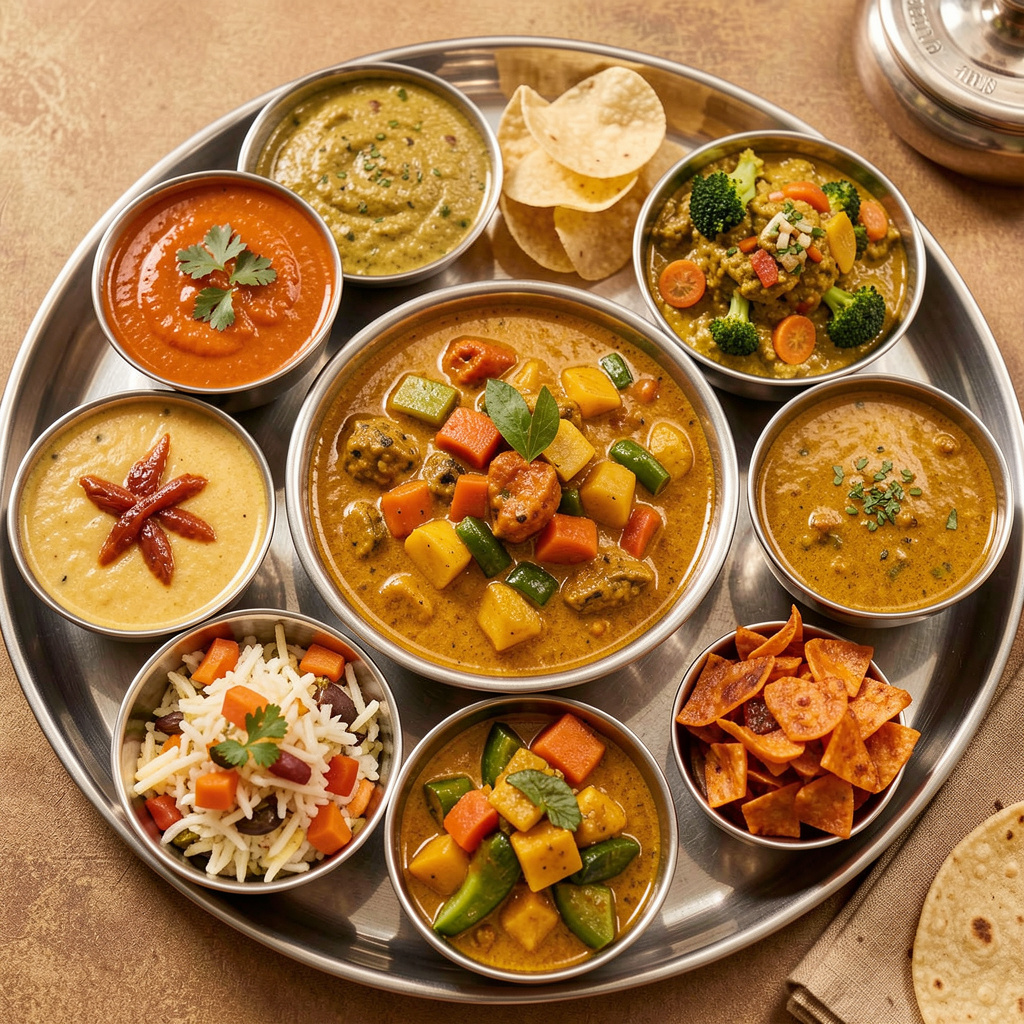 Traditional Indian thali platter