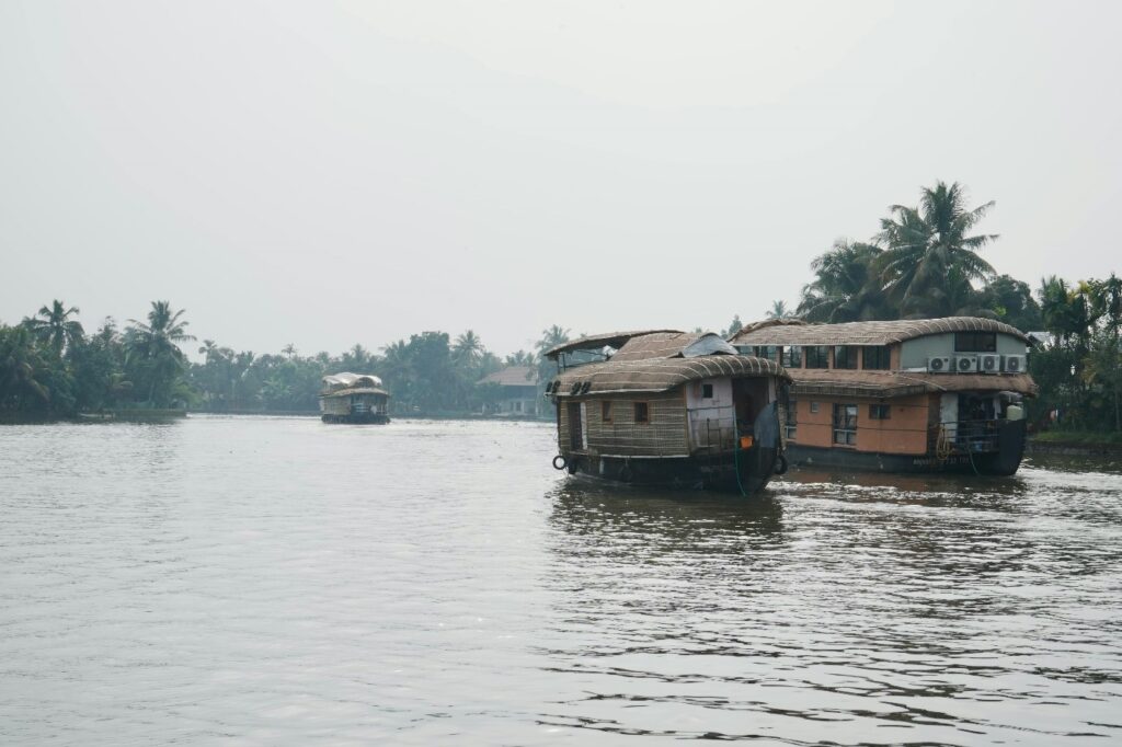 Traditional Kerala houseboat cruising