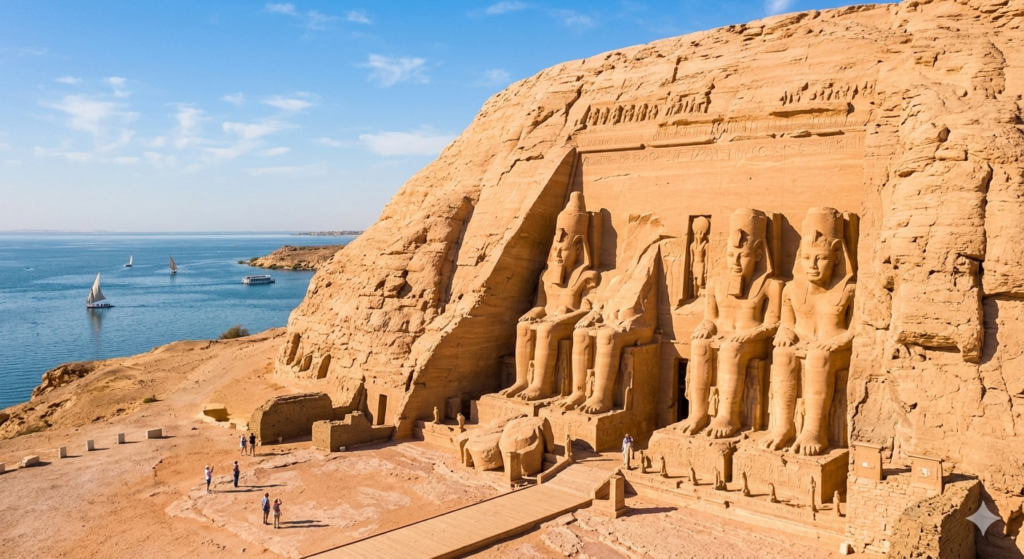 Colossal temples carved into solid rock. Built by Ramesses II near the Sudanese border, these temples feature four 20-meter-tall statues of the Pharaoh. This site is a masterpiece of ancient engineering, famously saved from Lake Nasser’s rising waters by a massive international relocation project in the 1960s.