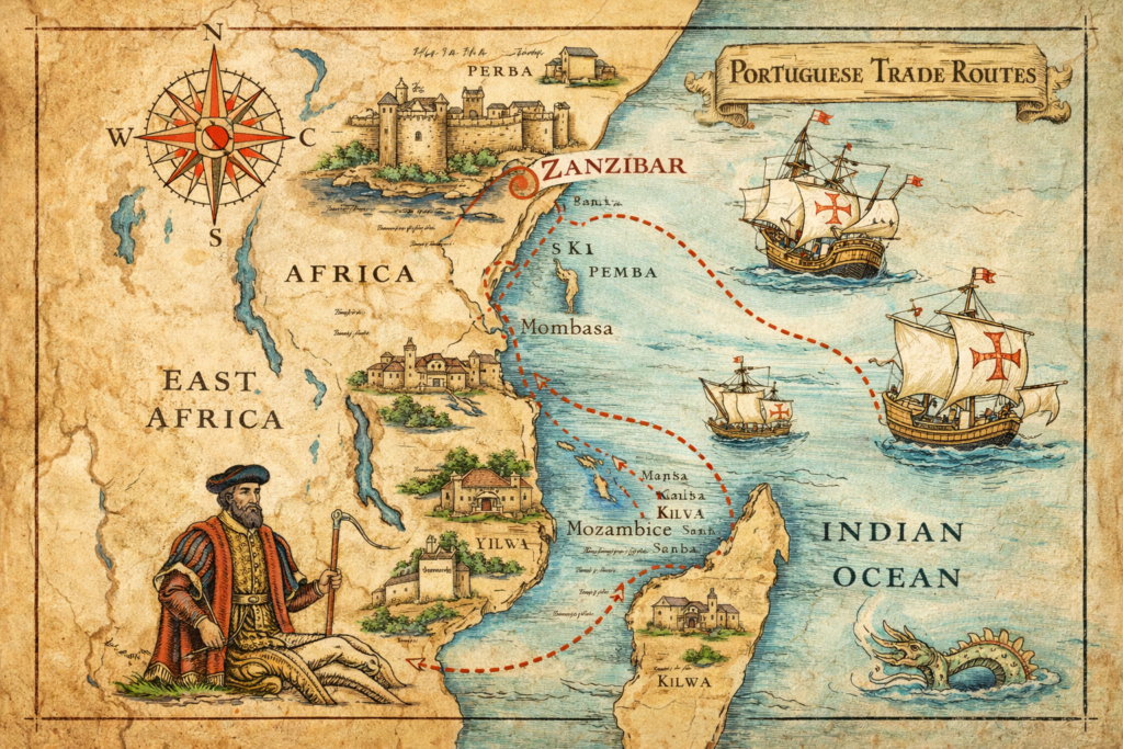 The arrival of Portuguese explorer Vasco da Gama in 1498 marked the beginning of European influence on the East African coast. Soon afterward, Portugal established control over Zanzibar and several coastal trading ports. For about two centuries, the Portuguese dominated the regional trade routes and used the islands as strategic outposts in the Indian Ocean.